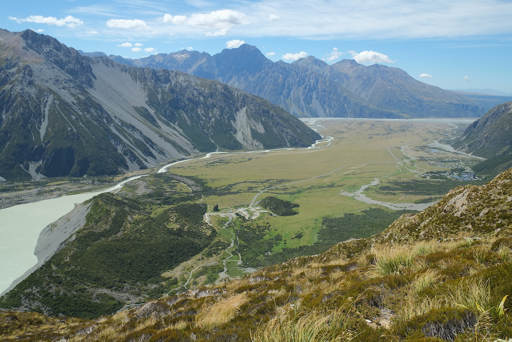 Toward the river bordering mountains by the sea.