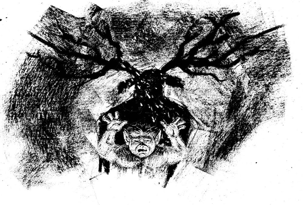 The troll set to work building a great fire in the main hall of their cave, and afterwards he gathered his family outside to see the last of the sun. Mother had brought the fire stones, and when the last sliver of sun had disappeared, she struck them together. She lit a bark torch and carried it back into the cave, her many children following behind. Father came last and sealed the entrance with boulders, sticks and mud. The youngest trolls were too young to remember last year’s ritual, but forgot their tears when Mother put the torch to the pyre, and flames crept towards the narrow crevice in the cave’s roof.